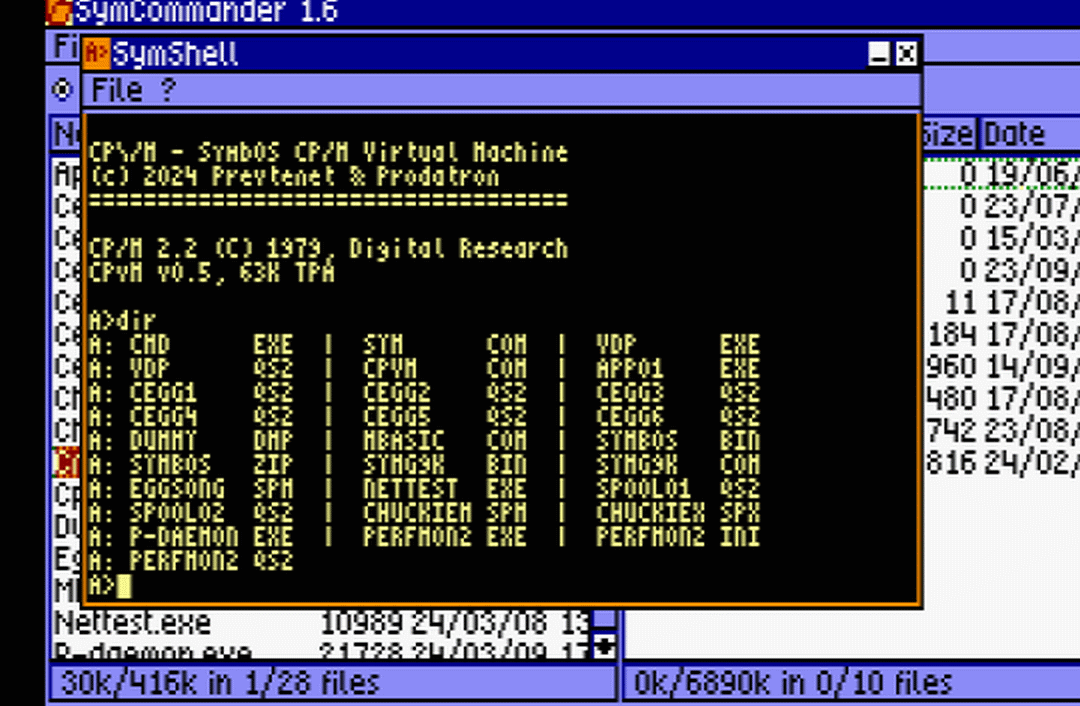 environment. As it is running on SymbOS you can have multiple virtual CP/M machines at the same time on your 1980ies Z80